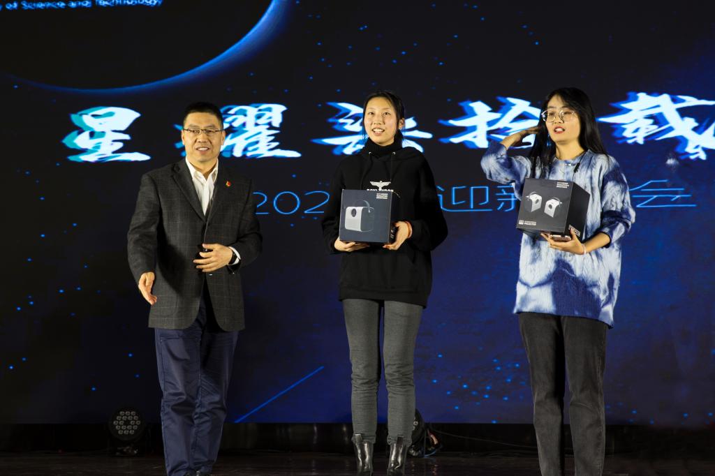 接下来是激动人心的抽奖环节,随着暂停键的按下,获奖名单逐渐揭晓。吕万翔为获得一等奖的幸运观众颁发奖品。