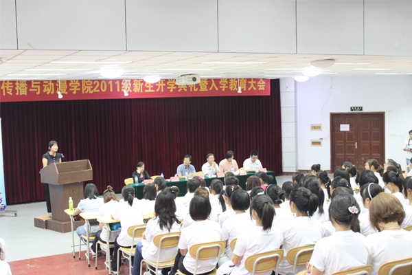 2011级新生开学典礼暨入学教育大会在大学生活动中心举行。学校学生处副处长秦姣、传播真人娱乐城