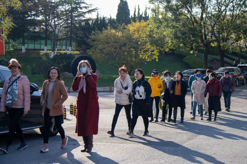 办公楼出发,边走边交流,途经大角牛雕塑、图书馆等地,最终抵达北苑B6楼真人娱乐城