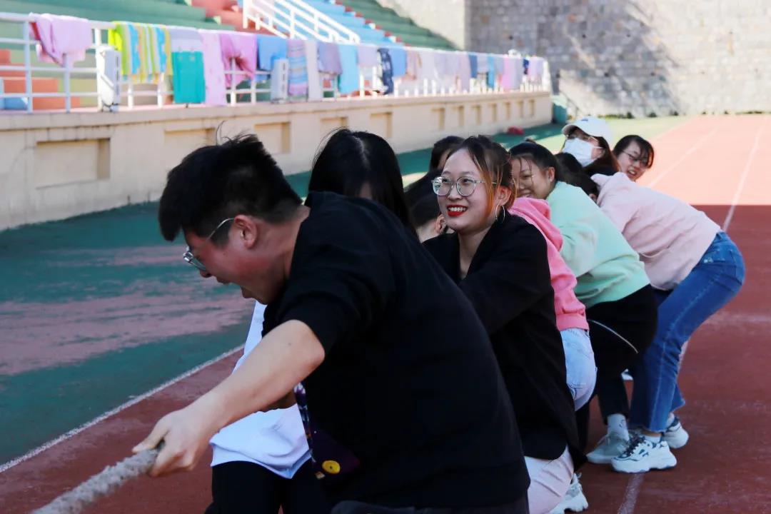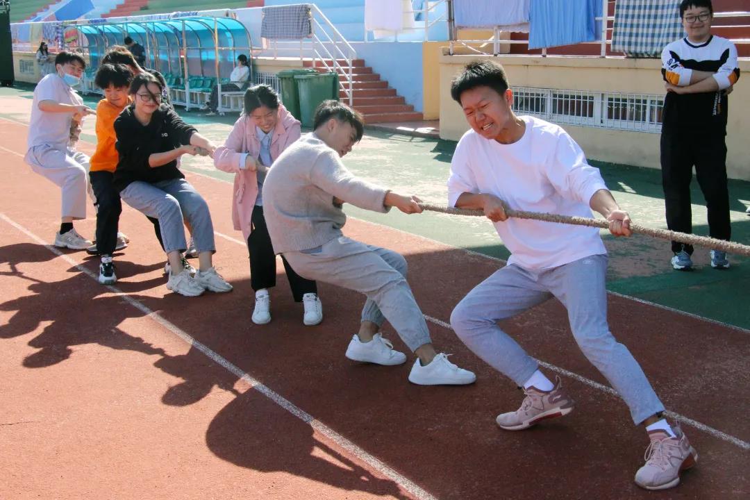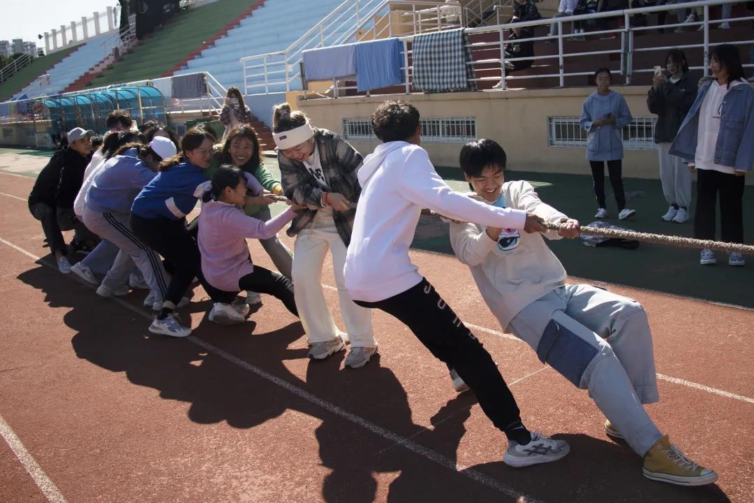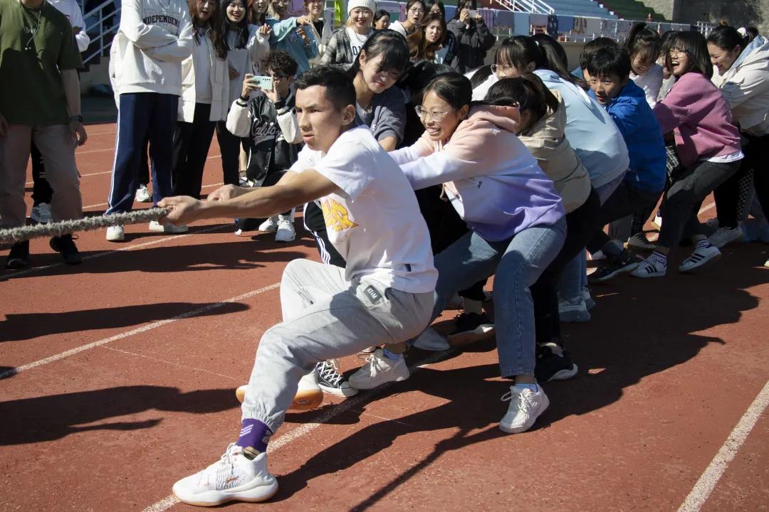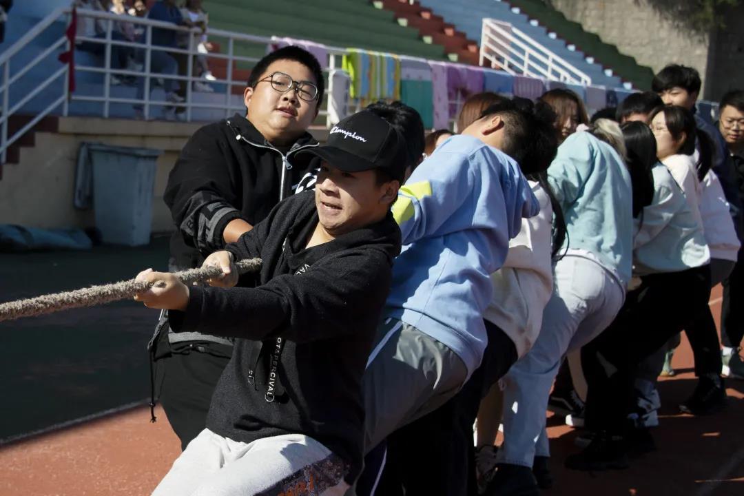 接下来是大二同学的比赛,赛场气氛紧张又热烈,一根绳子将同学们紧紧地联系在一起,大家都朝着同一个目标努力。经过同学们的不懈拼搏,编辑、汉学联队和广告202班进入决赛。