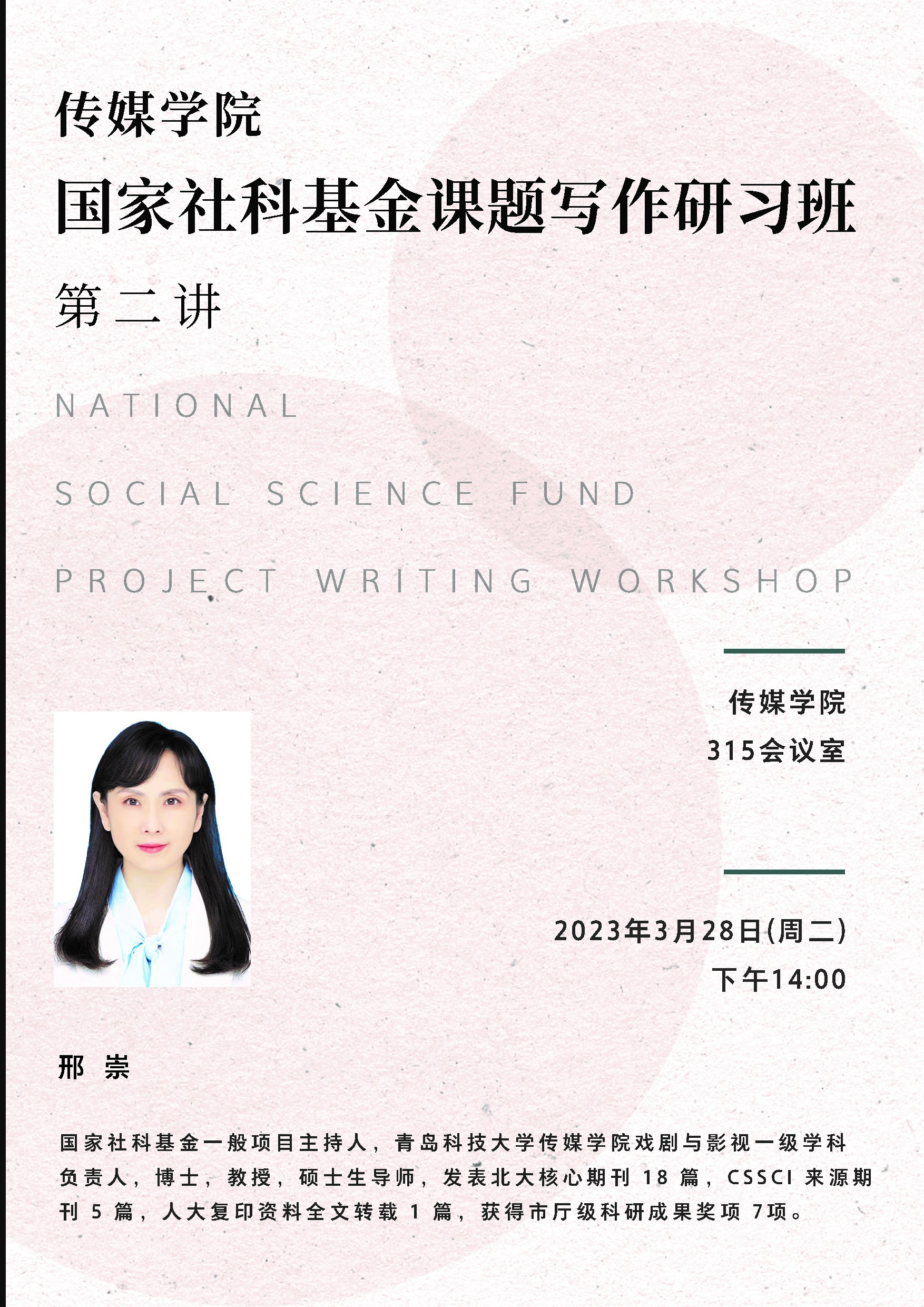 后续将开展一系列国家社科基金申报研习班,第二讲由国家社科基金主持人邢崇教授于3月28日下午三点在真人娱乐城