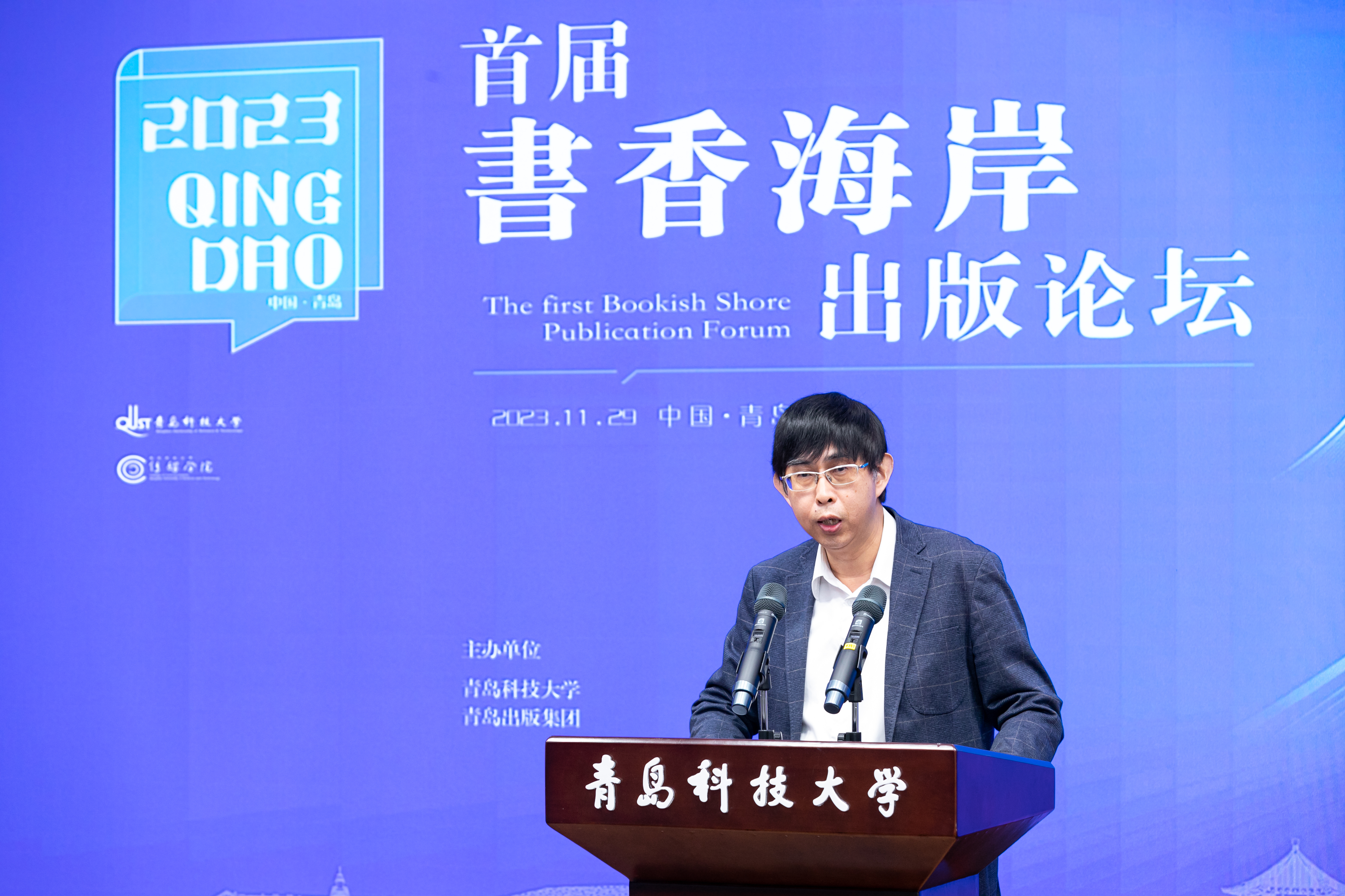 11月29日,首届书香海岸出版论坛在青岛科技大学崂山校区举行。中宣部出版局、山东省委宣传部有关同志,全国出版学科专业共建工作联络处主任张久珍、全国出版专业学位研究生教育指导委员会副主任委员张志强、中国编辑学会会长郝振省、副会长兼秘书长乔还田、韬奋基金会副秘书长刘国辉,青岛出版集团党委书记、董事长贾庆鹏,青岛科技大学校长陈克正、副校长李少远等出席开幕式。