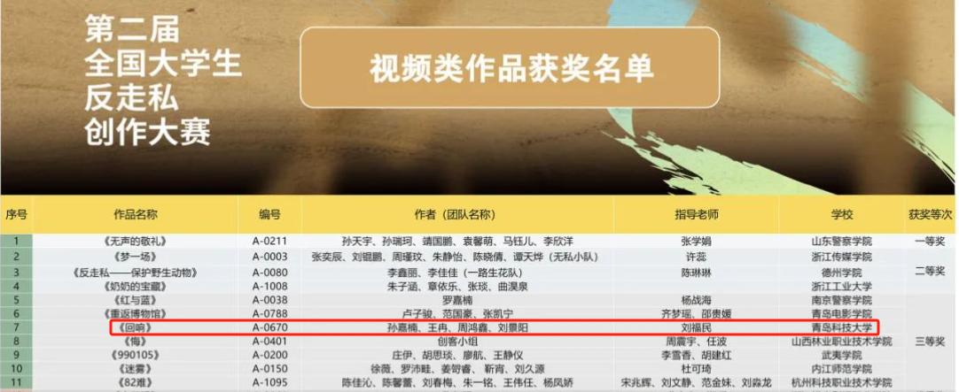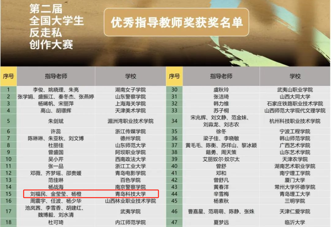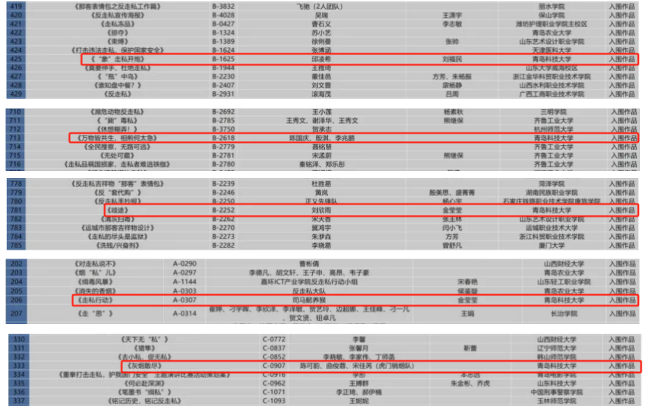 近日,第二届全国大学生反走私创作大赛获奖名单公布,学校多项作品在本次大赛中获奖。其中,青岛科技大学获优秀组织奖(全国仅77项)。真人娱乐城