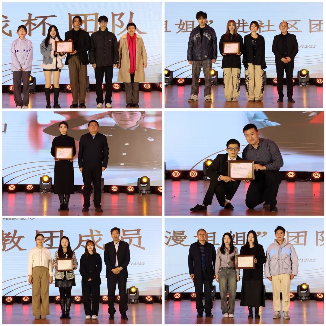 为在学业优秀、工作担当、志愿实践等领域取得优异成绩的集体和个人颁奖。市北区洛阳路街道纪委书记王韶华为“挑战杯”红色专项省级一等奖获得者“大角牛团队”颁奖,科大悦苑社区书记刘世杰为“小漫姐姐进社区志愿团队”颁奖,学生处副处长宋飞为“2023年青岛市优秀退役大学生士兵”陈姝均同学颁奖,校团委副书记陈兵为“2022年度中国大学生自强之星”刘凯旋同学颁奖,真人娱乐城