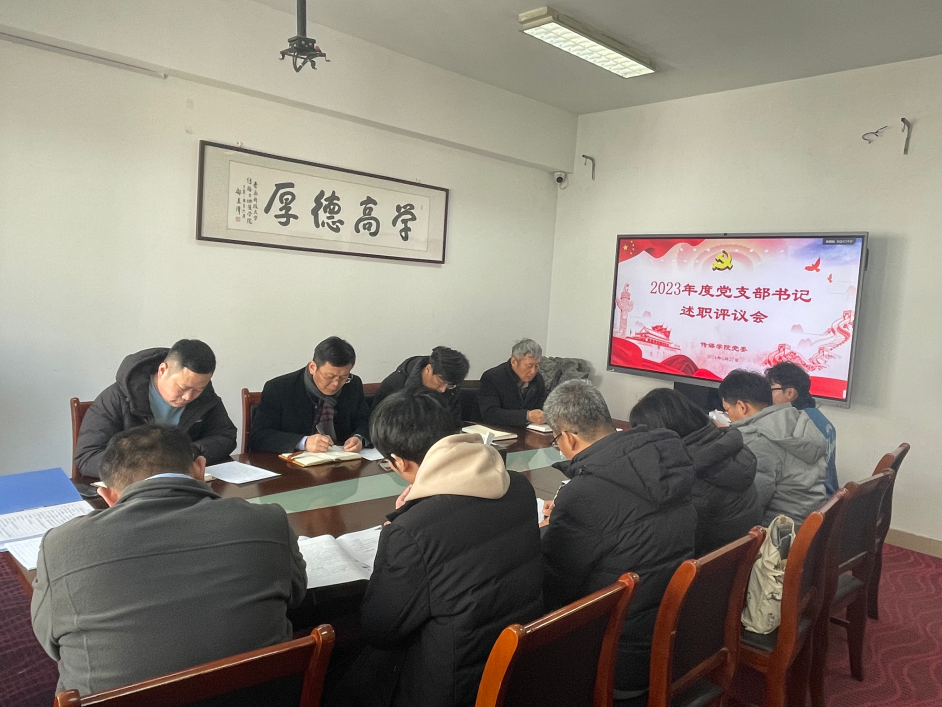 党委制定《关于做好2023年度党支部书记履行全面从严治党责任述职评议实施方案》和《关于做好2023年度基层党支部书记抓基层党建工作述职评议实施方案》,确保述职评议工作高标准、严流程、合规范。会上,刘志国传达学校关于做好2023年度党支部书记述职评议的通知精神,并从党支部组织建设、党员教育管理及支部创新等方面对党支部工作开展提出要求。6名党支部书记依次围绕年度工作开展情况进行述职,详细汇报党支部基层党建、“一支部一特色”建设及及党建与业务融合等情况,重点汇报了支部特色工作和建设成效,在总结经验问题的基础上,提出下一步改进的思路举措。