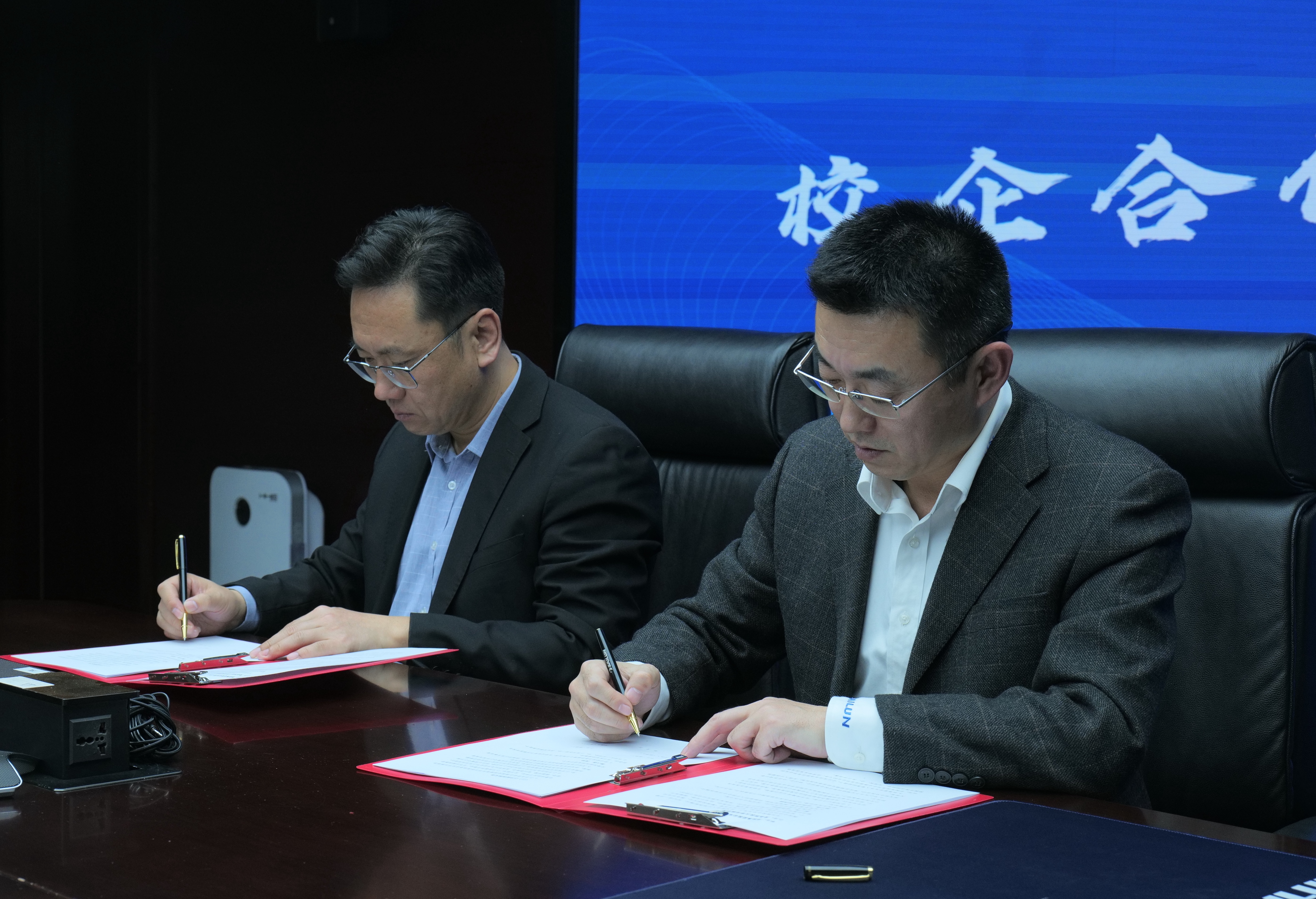 会上,校企双方代表签订共建协议,同时就大学生就业、实习实训、人才培养等具体事宜开展座谈交流。