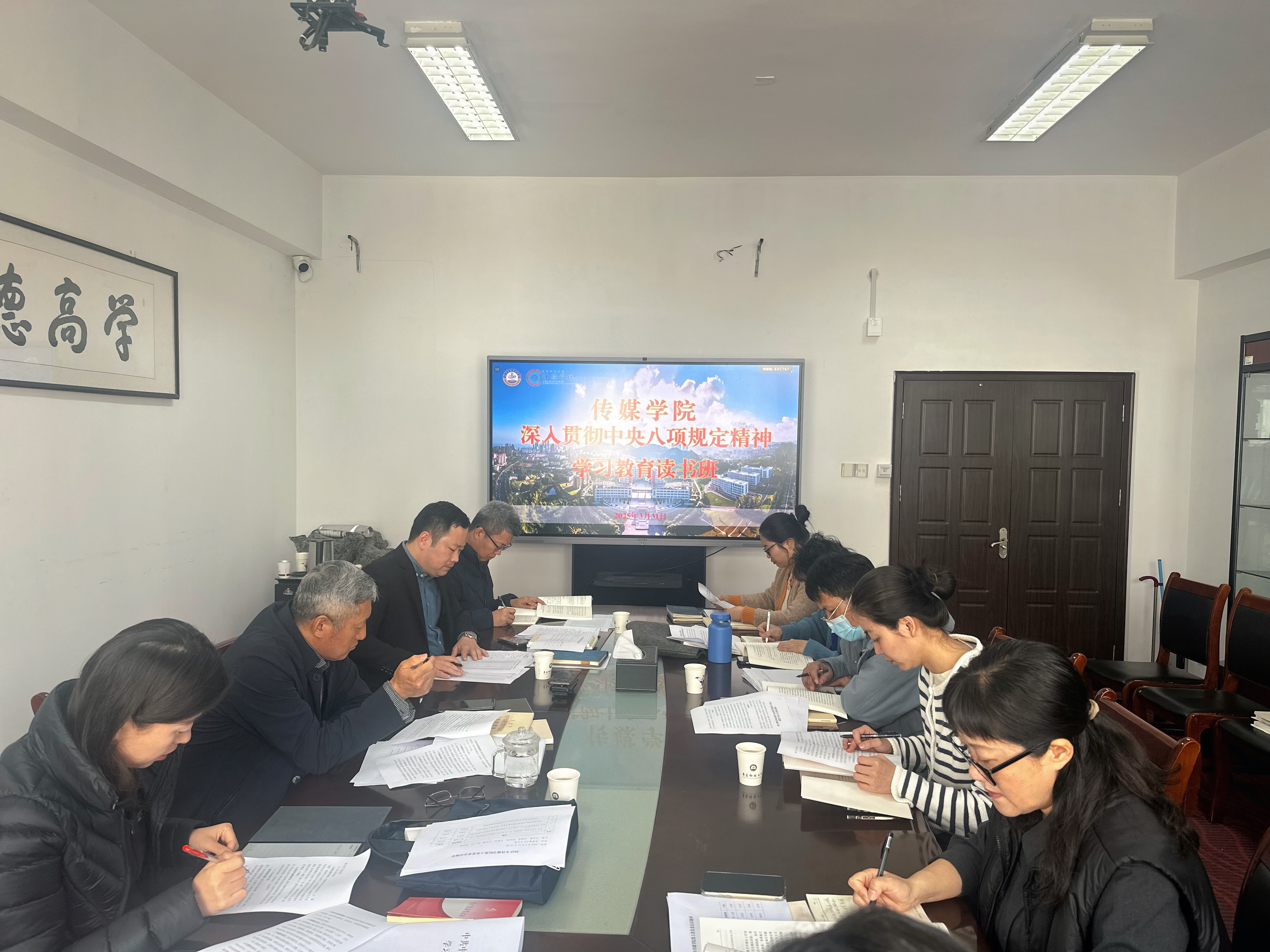 党委组织党委委员、全体党支部书记集体进行读书班学习,原原本本学习《习近平关于加强党的作风建设论述摘编》、《习近平总书记关于党的建设的重要思想概论》、《中共中央八项规定》及《中共中央八项规定实施细则》等内容,深入领会中央八项规定精神的时代内涵和实践要求。领导班子成员带头领学,精准解读重点任务,结合典型案例剖析“四风”问题新动向,教工党员、学生党员代表参加集体学习。同时领导班子成员结合教育工作实际,逐一进行交流研讨,重点剖析全面从严治党在高校领域的现实意义,强调以严的基调正风肃纪。