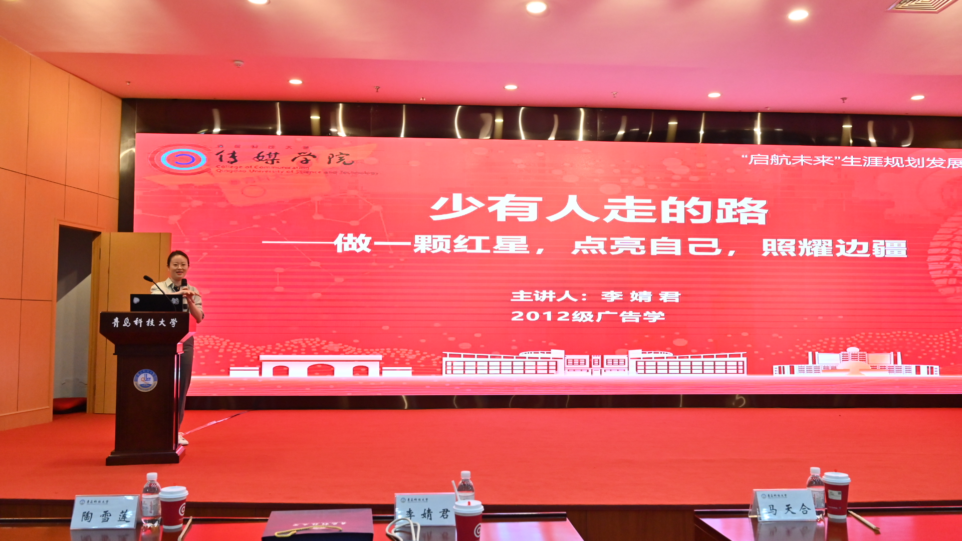 校友论坛环节,2012级广告学专业李婧君校友以“少有人走的路——做一颗红星,点亮自己,照耀边疆”为题,讲述自己的成长之路,她号召同学们将个人理想融入国家发展的宏伟蓝图,到祖国最需要的地方去建功立业。2012级动画专业马天合校友以“影视动画就业前景交流”为题,介绍了AIGC短视频制作等相关项目案例,并就当前行业发展趋势进行分析,鼓励同学们积累经验、勇敢尝试,找到适合自己的发展方向。2016级编辑出版学专业姜梦校友以“从课堂到职场:一名出版‘新生’的知行之路”为主题,聚焦“课堂知识与职场实践的衔接”,鼓励同学们在扎实学习编辑出版专业知识的基础上,更加注重实践运用。