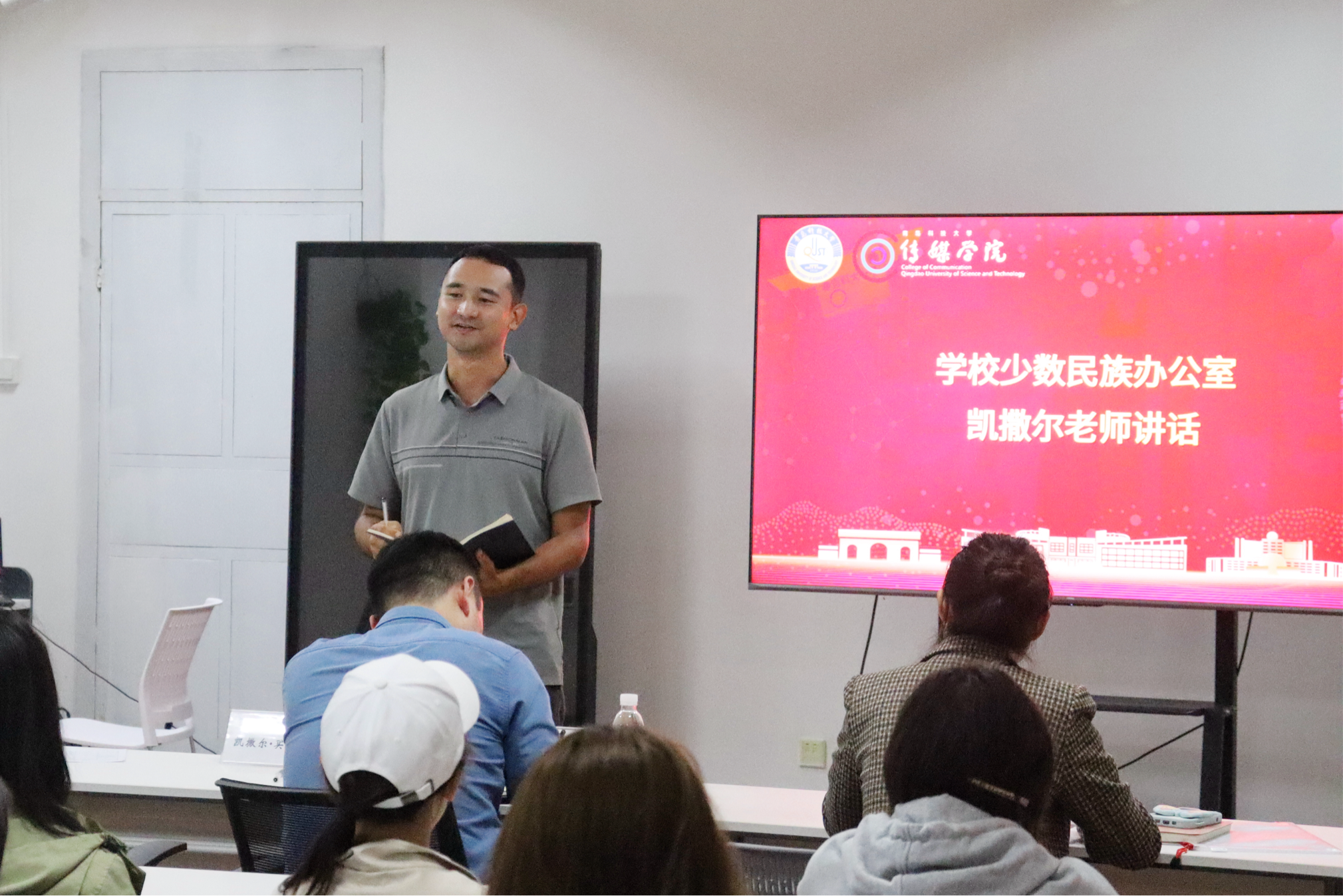 凯撒尔·买买提老师在交流中介绍了国家和学校对少数民族学生的关怀政策。他详细讲解了少数民族奖学金、预科生奖学金及省政府励志奖学金等专项政策,勉励同学们善用政策支持,激发学习动力。同时,他强调遵守校纪校规是学生成长的基本要求,文明上网是数字时代的必备素养,希望同学们在政策关怀与自律规范中砥砺前行。