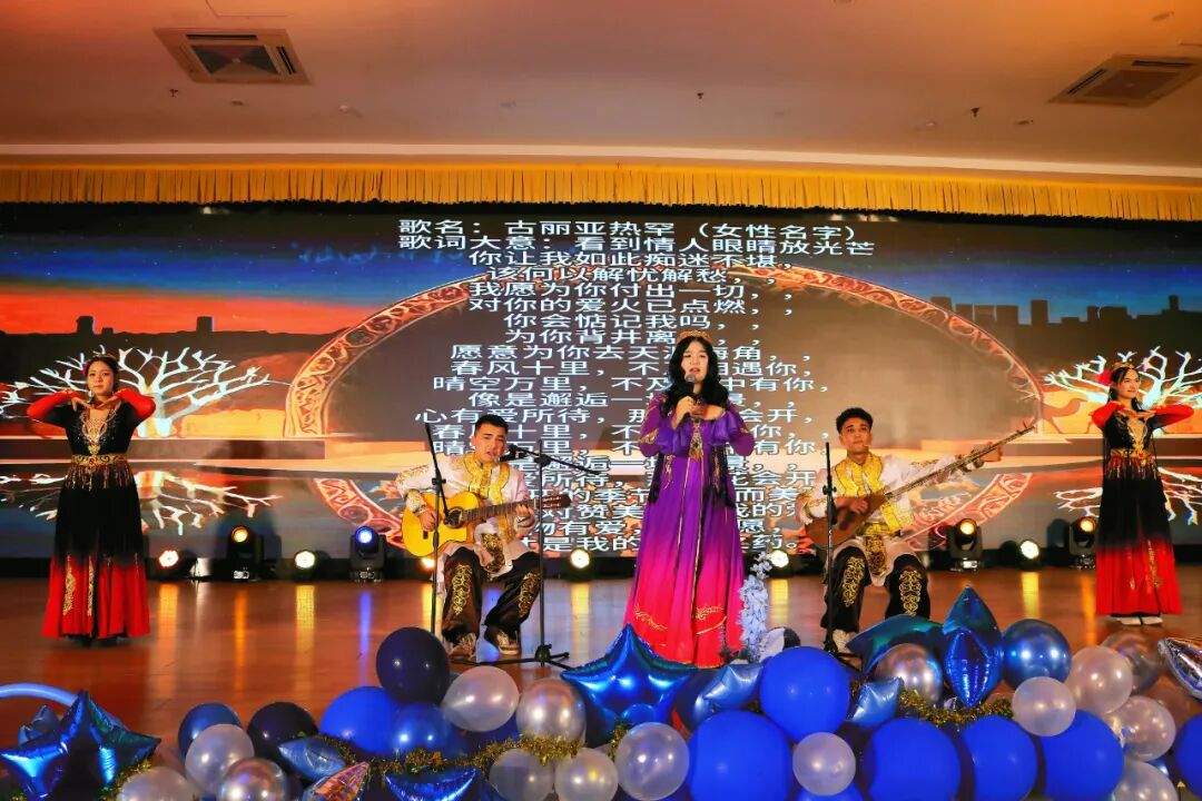 都塔尔弹唱《新疆民歌》奏响浓郁的民族风情,独特的乐器与动人腔调,让观众领略到多元文化的魅力;综合相声《班长的心事》通过活灵活现的表演,将校园趣事演绎得绘声绘色;舞蹈串烧《青春舞步》旋律轻快,把青春里的小确幸娓娓道来;师生歌舞《红日》更是将全场氛围推向顶点——团委老师与学生会骨干同台演绎,以师生同心的画面生动诠释了真人娱乐城