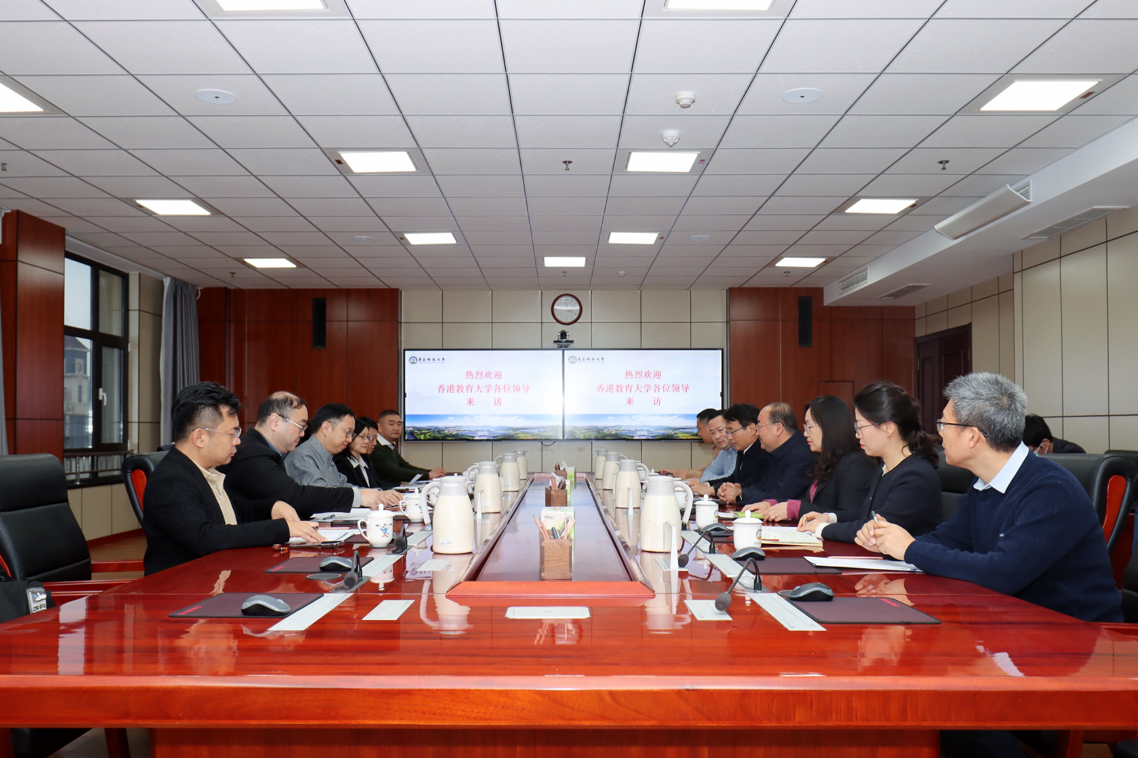 座谈会前,香港教育大学代表团一行参观了校史馆,深入了解青科大的办学历史沿革、学科发展优势与特色育人成果。