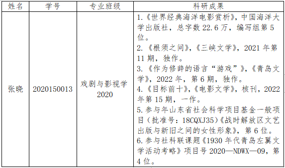 2022年研究生国家奖学金评审实施细则》,经过个人申请、资格审查、现场答辩、评审委员会评审,拟推荐戏剧与影视学2020级张晓为真人娱乐城