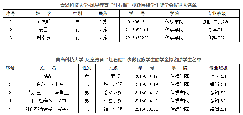 为深入贯彻落实党和政府的民族政策,加强对少数民族学生的培养,激励少数民族学生勤奋学习、努力进取,在德、智、体、美、劳等方面得到全面发展,根据学校2023年度凤皇教育“红石榴”少数民族奖助学金评选要求,通过自主申报、公开评审等环节,确定了奖学金和助学金人选。现公示如下: