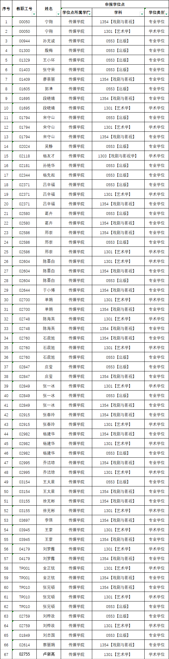 艺术学(戏剧影视学)一级硕士点