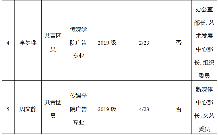②部门部长:必须有一年以上学生会工作经验。