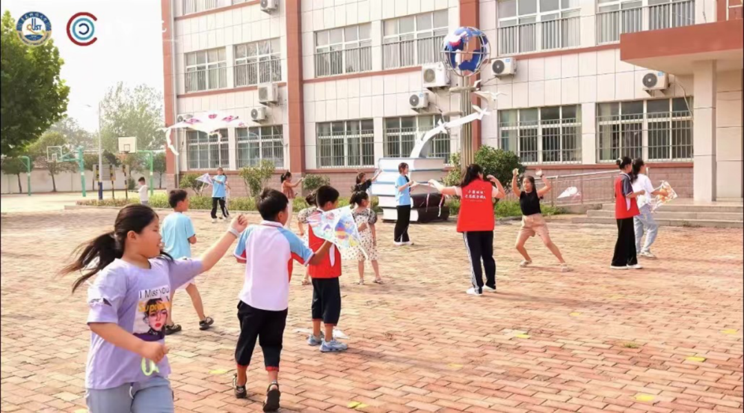 大雨过后的操场上,阳光撒在地面。孩子们手中紧握着线轴,队员们则奔跑着将纸鸢送上天空。虽然有的纸鸢在空中摇摇晃晃,但最终还是飞了起来。看到自己的作品翱翔于蓝天之上,孩子们发出阵阵欢呼,仿佛自己的梦想也跟着纸鸢一同飞向了远方。