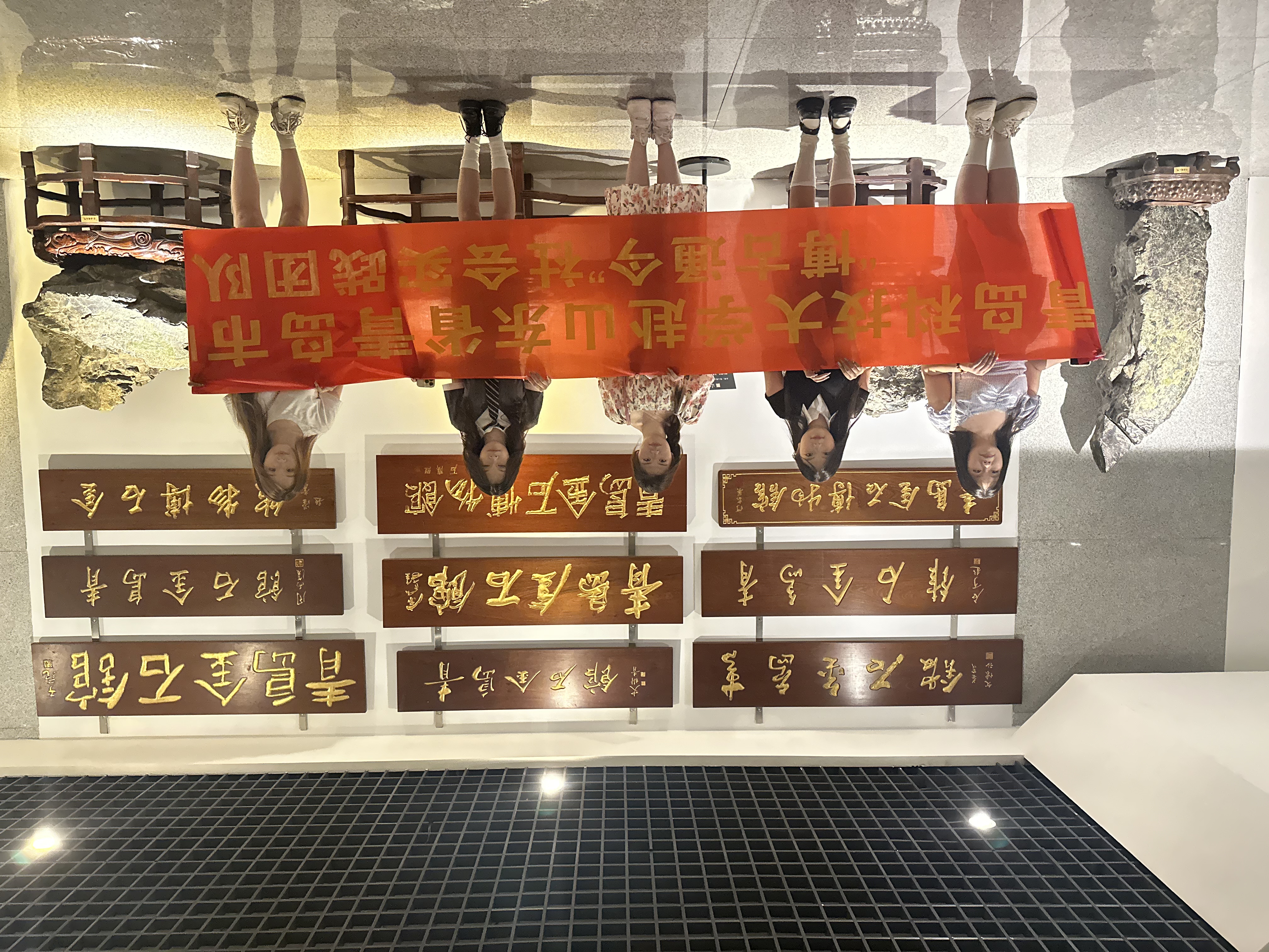 实践团队带着对知识的渴望和对文化的敬畏,走进了这个充满神秘与魅力的艺术殿堂。在博物馆内,同学们首先被奇石馆深深吸引。奇石馆作为博物馆的主要展馆,收藏展出了大量的珍稀观赏石,包括灵璧石、崂山绿石、彩陶石、大化石、风砺石和黄蜡石等。这些奇石未经人工雕琢,天然而成,以“瘦、透、漏、皱、丑、奇”为特点,展现了大自然的鬼斧神工和独特魅力。同学们在观赏过程中啧啧称叹,纷纷拿出手机记录下这份难得的视觉盛宴。