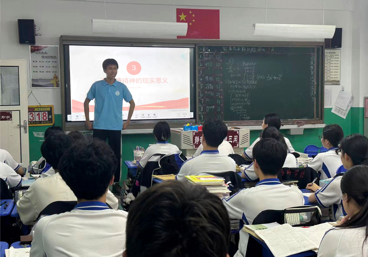 团队成员郑强以视频展示的方式,带领师生走进西柏坡的地域风貌、革命旧址以及当年的革命场景,使师生仿佛穿越时空,亲身感受到了那段激情燃烧的历史时刻。在宣讲过程中,郑强结合当代社会的实际,阐述了“西柏坡精神”在当今时代的重要意义和现实价值,鼓励学生们要继承和弘扬“西柏坡精神”,将其融入到日常学习和生活中,为实现中华民族的伟大复兴贡献自己的力量。同时,以“翻转课堂”的形式与学生积极互动,引导学生们展望未来,鼓励青少年继承和发扬“西柏坡精神”,树立远大理想,增强历史责任感,勤奋学习,锤炼品德,锻炼意志,全面发展,成为能够担当民族复兴大任的时代新人。活动结束后,学生们纷纷表示受益匪浅,通过本次宣讲学习,不仅更加深入地了解了西柏坡的革命历史和精神内涵,还受到了深刻的爱国主义教育,今后将把“西柏坡精神”作为自己前进道路上的指路明灯,努力学习,奋发向上。