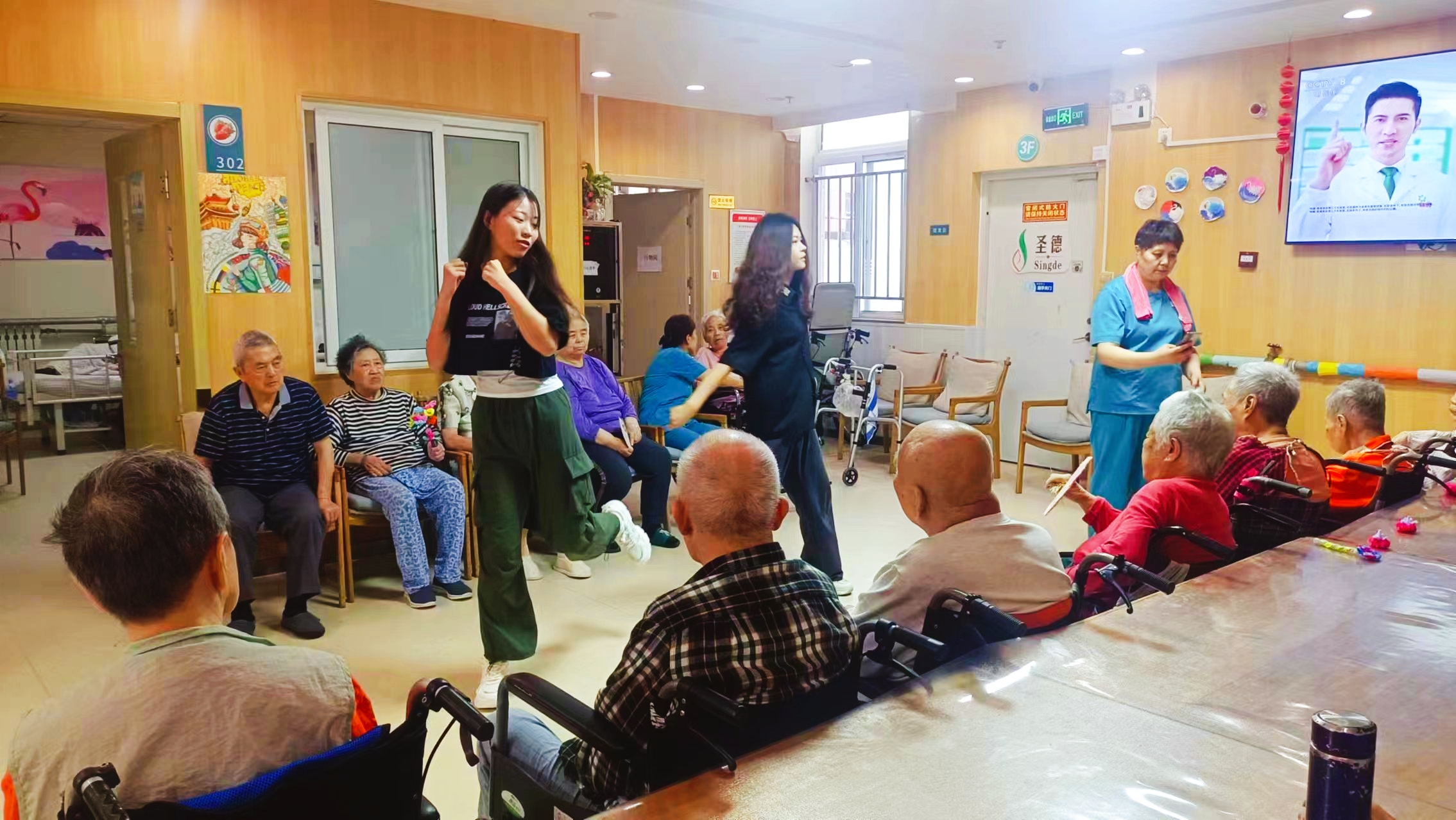 歌声是传递情感的美妙载体。随后,爷爷奶奶们与实践队员唱响《打靶归来》等一首首经典的歌曲,那熟悉的旋律仿佛带着老人们穿越时光,回到了过去的美好岁月,勾起了他们心底深处的回忆。歌声中,老人们轻轻跟唱,眼神中流露出无尽的感动和欢喜。紧接着,同学们又跳起了欢快的舞蹈。充满活力的舞姿、青春洋溢的笑容,为老人们带来了愉悦和欢乐。他们用灵动的舞步,诠释着对老人们的敬爱之情,让老人们感受到了青春的气息和活力。