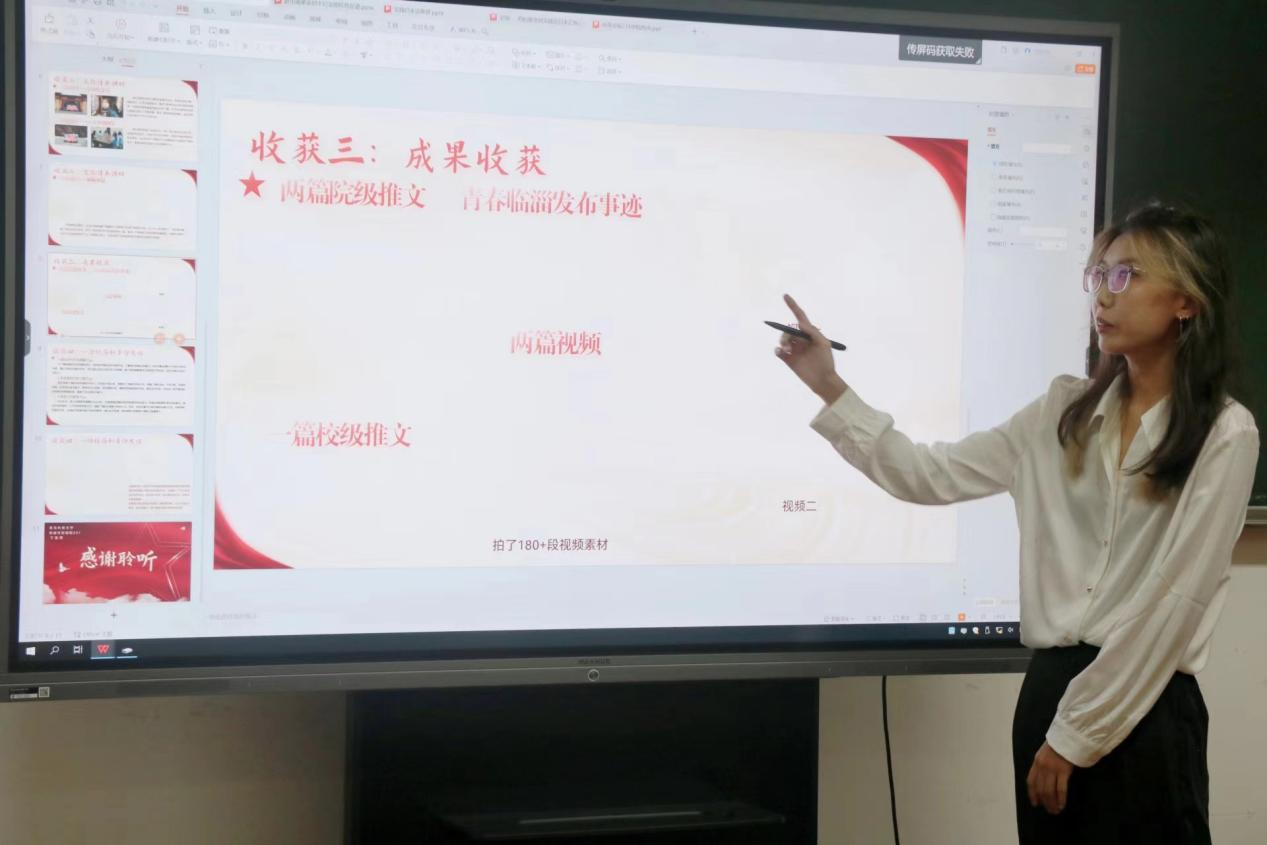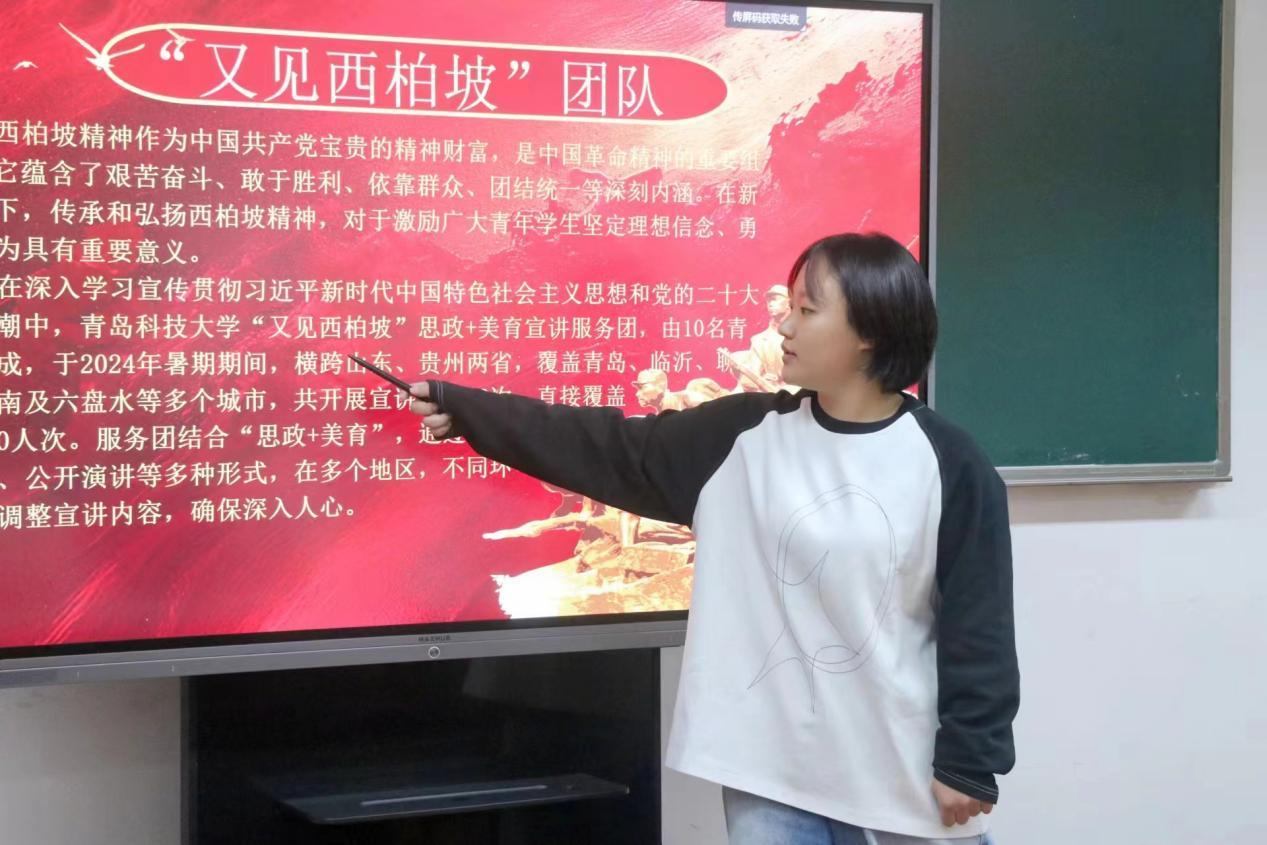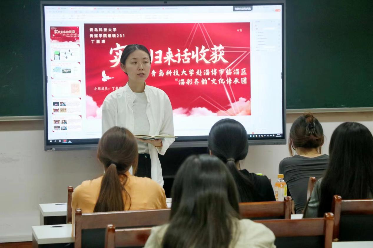 本次交流会有青岛科技大学赴市南区革命烈士纪念馆红色足迹学习团、青岛科技大学赴临沂市莒南县小漫姐姐美遇童行志愿服务团、青岛科技大学赴青岛市崂山区“茶香结情 青春赴农”社会实践团、青岛科技大学“又见西柏坡”思政+美育宣讲服务团、青岛科技大学赴淄博市临淄区“淄彩齐韵”文化传承团。各主讲人通过分享实践过程,畅谈实践经验与方式,回顾成果与收获,用文字、照片、视频等方式生动有趣的展示了实践经历,鼓舞了其他青年学子。