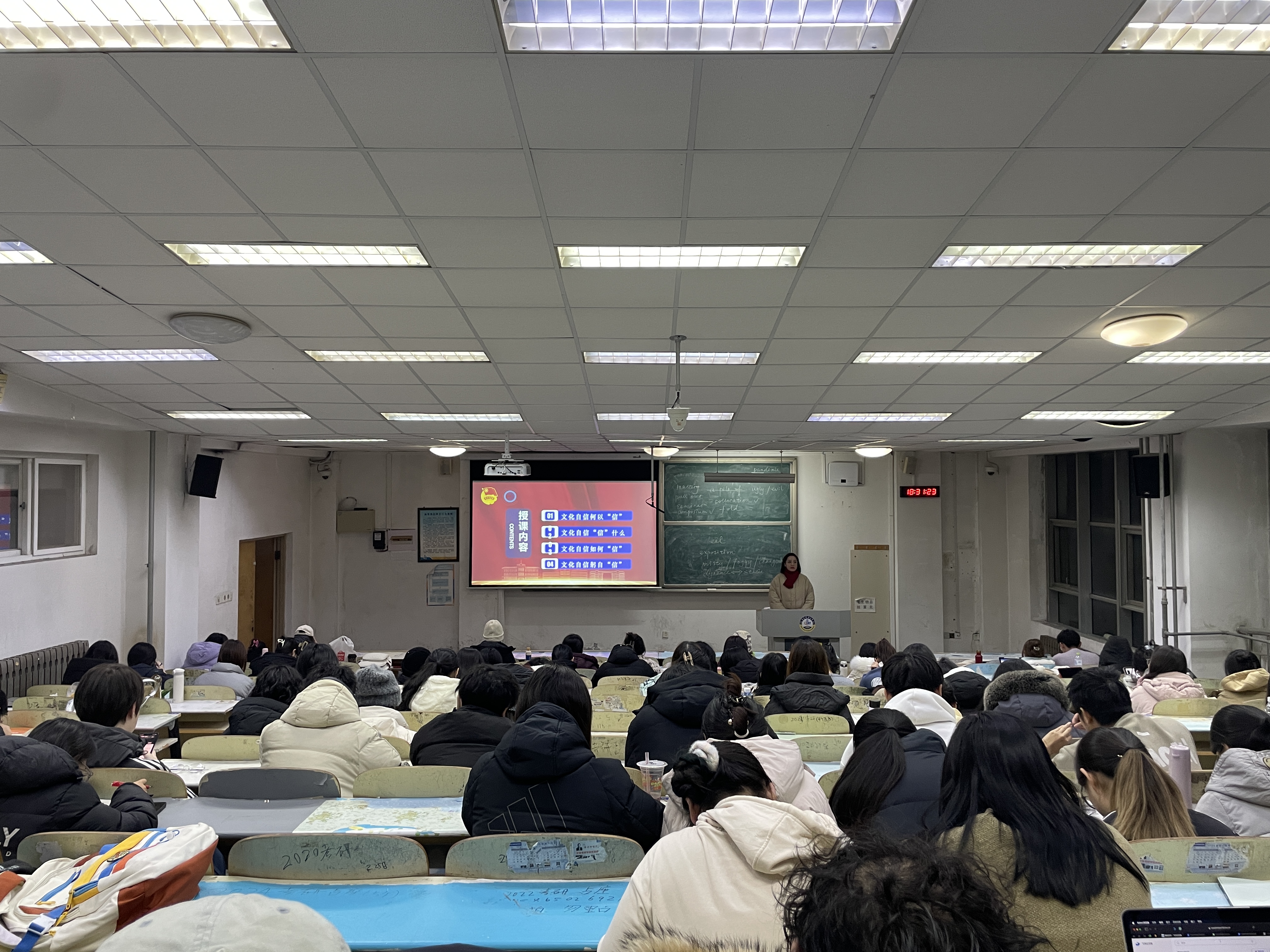 张鸣以“文化何以‘信’?”“文化自信信什么?”“文化自信如何信?”“文化自信躬自信“四个问题为引入,先向入团积极分子们讲述了什么是中华文化基因,不仅讲述了中华文化基因的核心思想、生成过程以及经久不衰的原因,并且讲述了中华文化基因的现代意义以及所面临的时代挑战。随后,张鸣以当前文化传承挑战为背景,讲述了青年大学生应如何坚定文化自信、坚持传承和弘扬中华优秀传统文化,践行社会主义核心价值观,担负起“文化强国”的使命。最后,她向同学们讲述深植文化自信的具体做法,并带领同学们展开了热烈的讨论和交流,共同探讨如何在新的时代背景下,传承和发扬本土文化。
