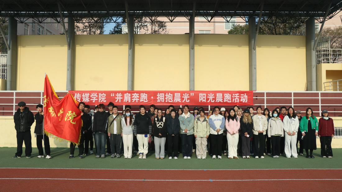早晨7:00,参与晨跑活动的同学于南苑操场主席台前准时集合。在进行充分的热身准备后,大家列队整齐,斗志昂扬,整装待发。随着开跑口令发出,院旗在晨光中挥舞,同学们迎着朝阳迈开矫健的步伐,调整呼吸,保持节奏,一起并肩奔跑,展现出传媒学子良好精神风貌。