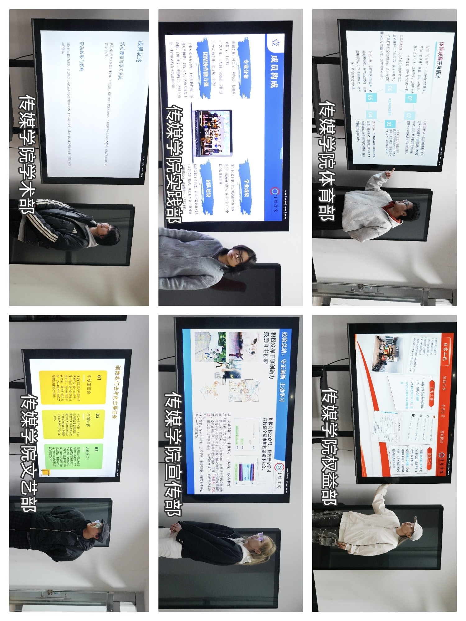 会上,各部门部长依次上台,通过精心准备的PPT展示,详细汇报了部门工作情况。从活动策划与执行、日常事务管理,到服务同学的各项举措,部长们用丰富的数据和生动的案例,全面展示了部门的工作亮点与成效。同时,他们也深入剖析了工作中存在的问题与不足,并提出了切实可行的改进计划。