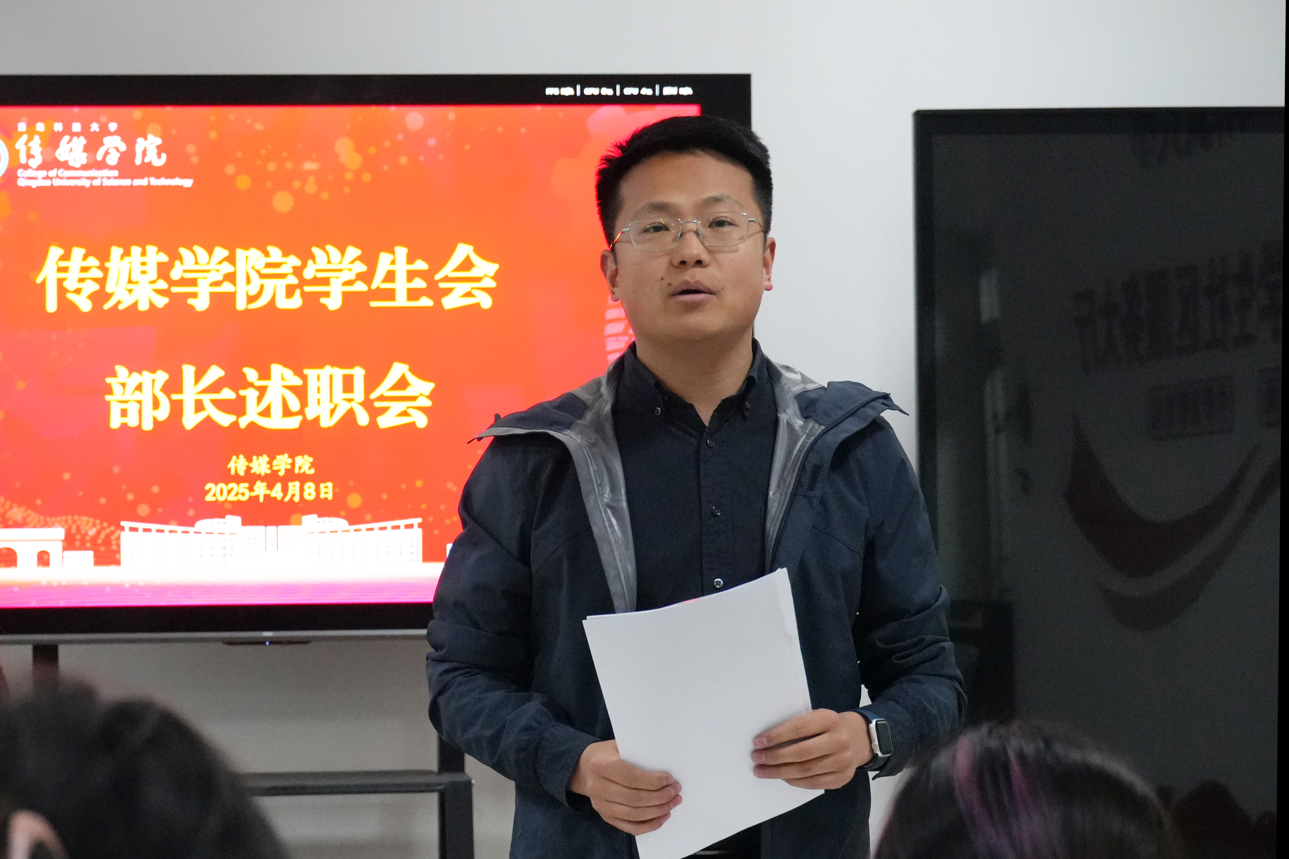 在认真听取部长们的述职后,金莹莹老师和刘福民老师分别进行了点评。老师们对各部门的辛勤付出和取得成绩给予充分肯定,同时也指出学生会在活动开展的创新性和影响力方面有待加强,部门间沟通协作还需进一步优化。老师们鼓励大家在今后的工作中,勇于创新,积极探索更具传媒特色、更受同学欢迎的活动形式,强化团队协作意识,打破部门壁垒,形成更强的工作合力。