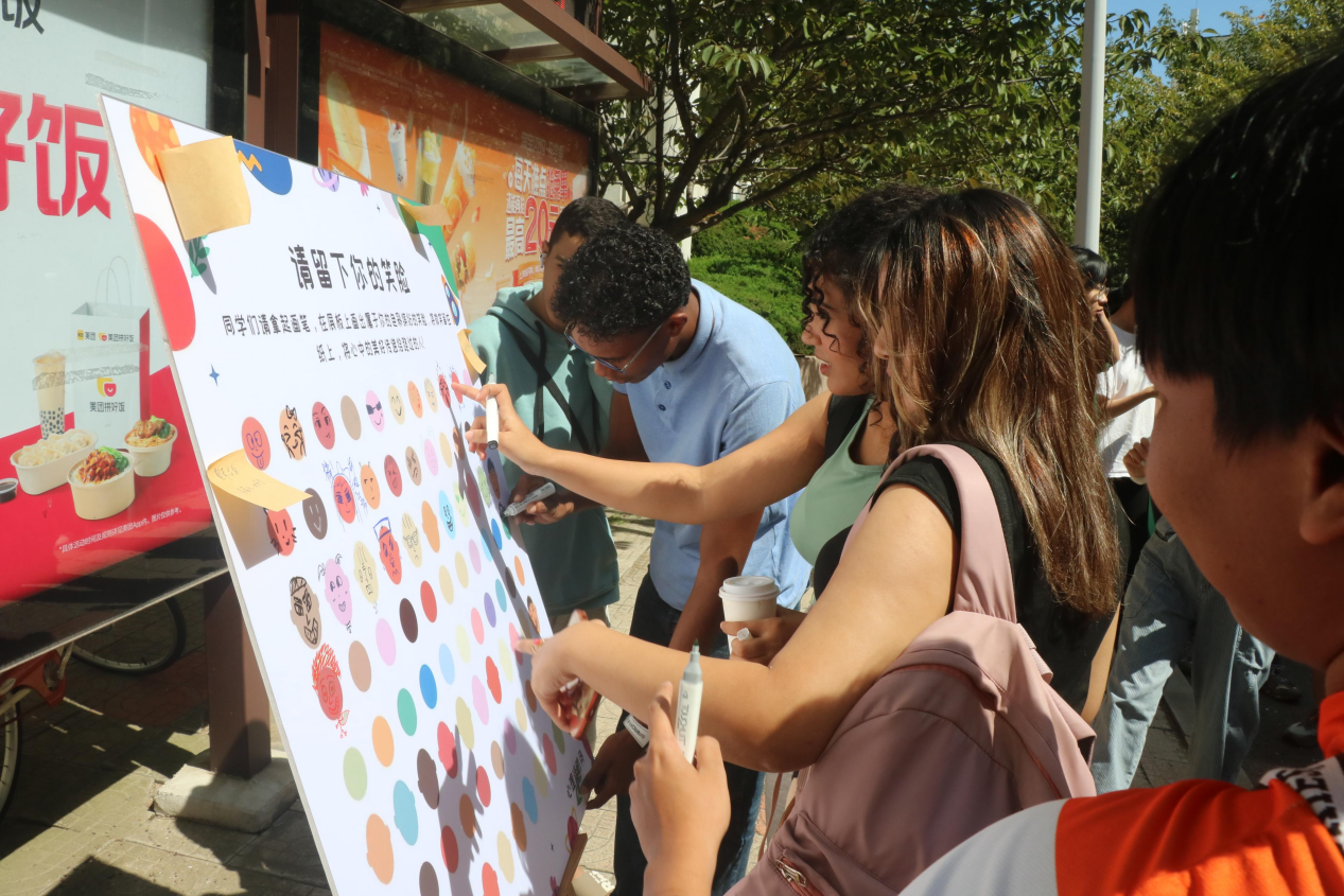 院平台开展“定格温暖,传递治愈”主题心理互动活动。同学们手持彩笔,在卡片上勾勒出各具特色的笑脸——有的灵动活泼,有的温柔治愈,整面墙的笑脸与寄语汇成一股暖流,为来往的师生带来深深的心灵慰藉。