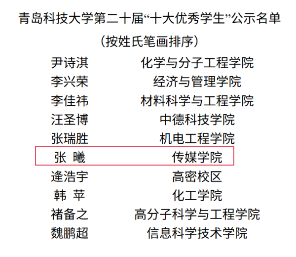 根据《青岛科技大学本科生荣誉奖评选管理办法(修订)》和《关于评选青岛科技大学第二十届“十大优秀学生”的通知》要求,经真人娱乐城
