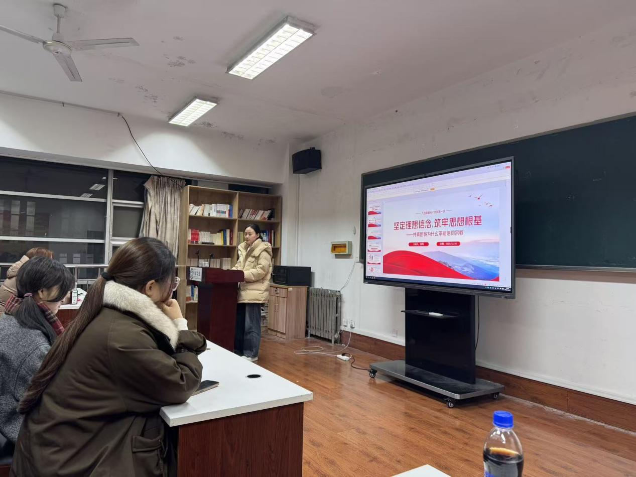 团干部张凤主讲《坚定理想信念,筑牢思想根基——共青团员为什么不能信仰宗教》。她从马克思主义世界观、共青团的性质与使命、团员先进性的内在要求等维度展开论述,强调共青团员必须牢固树立共产主义远大理想和中国特色社会主义共同理想,保持思想上的纯洁性与政治上的坚定性。