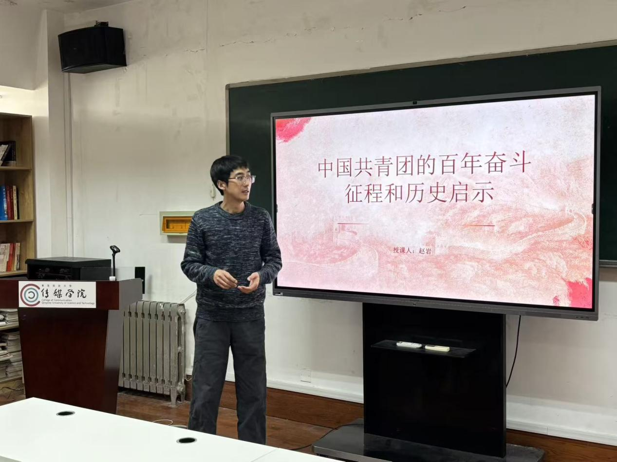 团干部赵岩以《中国共青团的百年奋斗征程与历史启示》为题,梳理了共青团在党的领导下走过的光辉历程,结合不同历史时期的青年运动与典型事迹,阐述共青团作为党的忠实助手和可靠后备军的历史逻辑与现实担当,激励入团积极分子从百年团史中汲取智慧力量,传承红色基因,勇担时代使命。