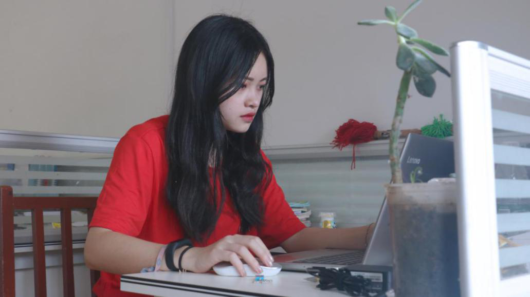 接着志愿者展示了一些卡通化的海底生物,并一笔一画地教给小朋友们基本元素的画法,随后就让小朋友们发挥想象,用画笔描绘海底世界。在绘画遇到困难时,志愿者也进行相应的指导,用以更好地激发孩子们的灵感。
