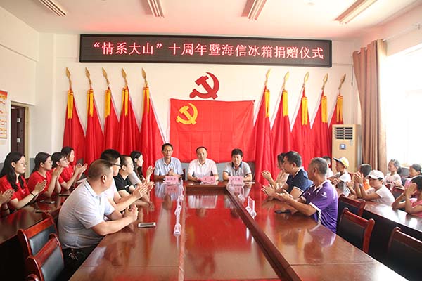 7月19日上午9:00,“情系大山”十周年暨海信冰箱捐赠仪式在临沂市莒南县涝坡镇中心小学会议室举行,出席仪式的有海信集团临沂分公司王总经理,涝坡镇副镇长王家陈,青岛科技大学传播与动漫真人娱乐城