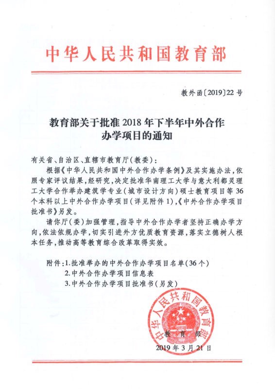 中华人民共和国中外合作办学项目批准书