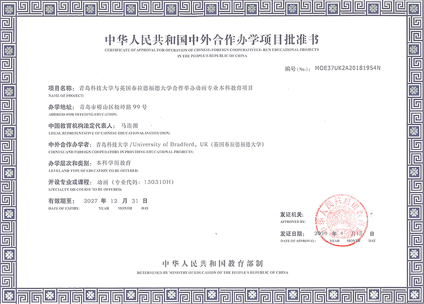 青岛科技大学与英国布拉德福德大学合作举办动画专业本科教育项目