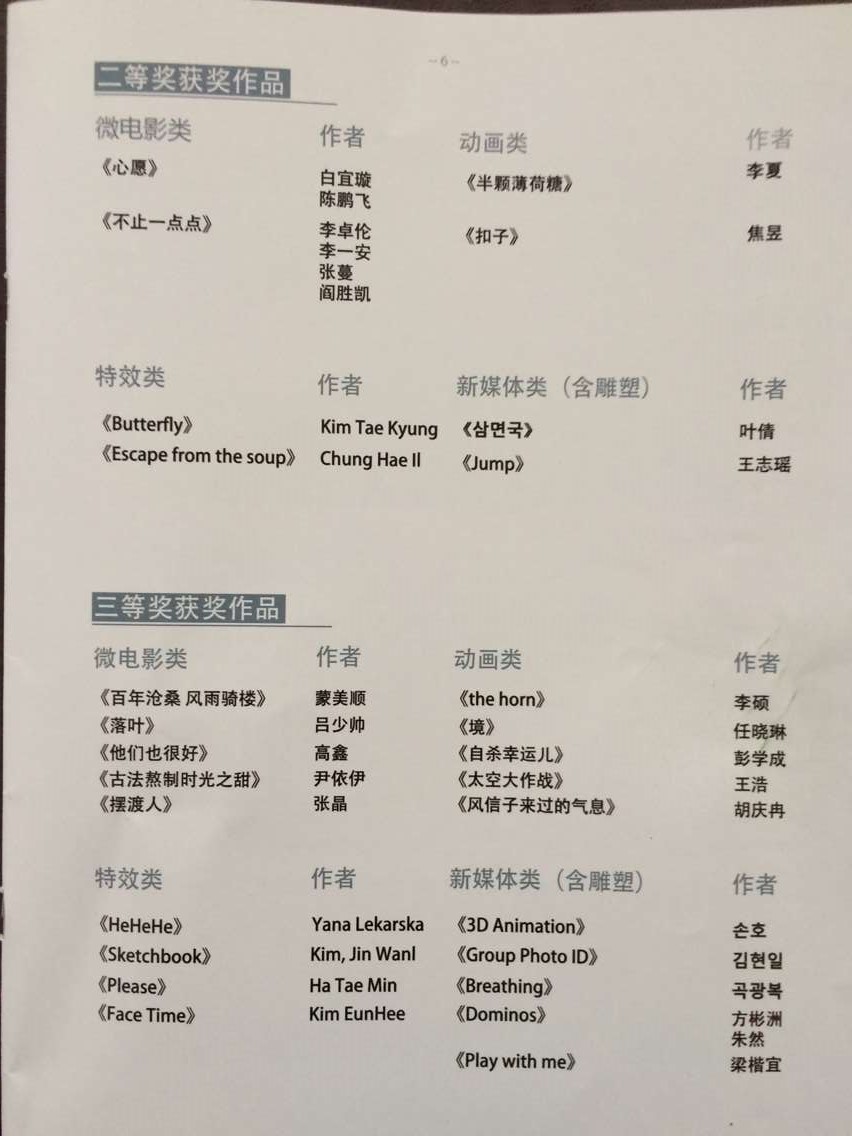 、青岛科技大学等国内外10所高校, 124部作品。经过专家评审,韩国中央大学作品《360VR》获新媒体类一等奖、韩国中央大学作品《Father》获特效类一等奖、北京电影真人娱乐城
