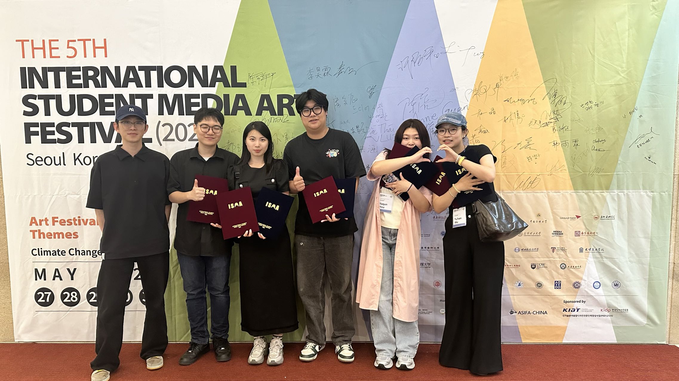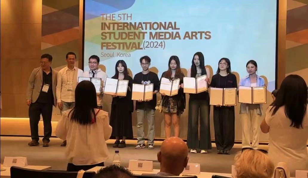杨建华、陈墨白老师带队带领10位动画、出版、广电专业的本科和研究生学生赴韩国参加此次艺术节72小时创作活动。青科学子在韩国首尔与国内外高校分组合作进行短片创作,最终斩获4项大奖。