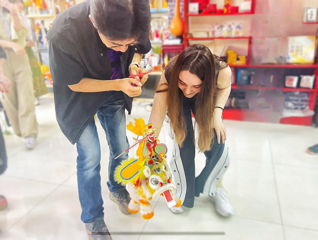 组织中英两国师生一行前往青岛莱西木偶艺术馆,对山东省级非遗项目“莱西木偶戏”进行考察,现场体验了莱西木偶戏的独特魅力。